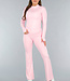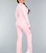 Dieses Sportset ist aus Stretchstoff gefertigt und einfarbig. Die Jacke hat lange Ärmel und einen durchgehenden Reißverschluss vorne sowie Ziernähte, die die Taille betonen. Außerdem verfügt die Jacke über Daumenlöcher. Die Sportleggings haben einen hohen Wickelbund und ausgestellte Hosenbeine.