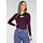 Dieses violette Oberteil hat eine taillierte Passform und einen Rundhalsausschnitt. Auf der Vorderseite befindet sich ein Cut-out mit einer festgenähten Falte und einem goldfarbenen Ring. Die langen Ärmel sind eng anliegend und der Stoff ist glatt und leicht dehnbar. Die Rückseite ist einfarbig und der Saum reicht bis zur Hüfte.