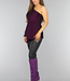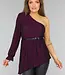 Dieses Top ist aus einem glitzernden Stoff gefertigt. Das Oberteil ist sehr dehnbar und hat einen einarmigen Schnitt. Außerdem hat es eine asymmetrische Form und eine Schulterpolsterung auf einer Seite. Es hat eine süße Rüsche am unteren Ende des Ärmels und ein elastisches Detail an der Taille.