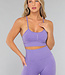 Dieser Sport-BH ist dehnbar und verfügt über herausnehmbare weiche Polster. Der Sport-BH hat verstellbare Spaghettiträger und ist tailliert, wobei sich die Spaghettiträger im Rücken kreuzen.