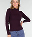 Dieses Oberteil ist aus einem glatten, dehnbaren Baumwollgemisch in einem tiefen Violett gefertigt. Das Modell hat lange Ärmel und einen hohen, eng anliegenden Rollkragen. Die Passform ist figurbetont und der Saum fällt gerade auf die Hüfte.
