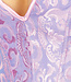 Dieses Korsett-Top ist aus einem schönen Satin-Stoff gefertigt und hat einen ornamentalen Aufdruck. Es hat einen Schnürverschluss auf der Rückseite, den Sie verstellen können und somit das Oberteil auch leicht an- und ausziehen können.