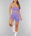 Aus einem dicken Stretch-Stoff gefertigt, bietet dieses Sport-Kit auch Kompression in Bereichen, in denen sie benötigt wird. Der Stoff ist herrlich weich und sehr atmungsaktiv. Das Set hat eine lila Farbe. Der Sport-BH hat einen runden Ausschnitt mit Spaghettiträgern und herausnehmbaren Pads. Die Shorts des Sets haben eine hohe Taille und ein Bündchen auf dem Rücken.