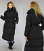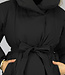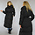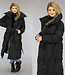Luxuriöser schwarzer Wintermantel in Übergröße mit Taillenband