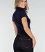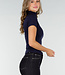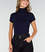 Dieses Oberteil ist aus einem robusten und dehnbaren Material gefertigt und hat eine taillierte Passform. Es hat kurze Ärmel und einen Rollkragen mit einer leichten Faltenbildung. Der Stoff ist komplett einfarbig.