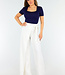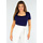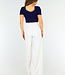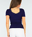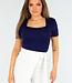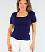 Dieses weiche T-Shirt ist aus einem feinen Stretch-Stoff gefertigt, der sich angenehm an den Körper anschmiegt. Die Rippenstruktur verleiht dem Shirt einen verspielten Effekt, während der quadratische Ausschnitt mit einem dezenten Spitzenbesatz versehen ist. Perfekt für warme Tage.