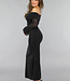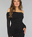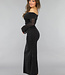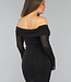 Dieses super dehnbare Kleid hat lange transparente Ärmel. Das liegt daran, dass das Kleid aus einer Art Netzstoff besteht und am Mieder doppelt gefüttert ist, damit es nicht durchscheint. Das Kleid hat einen schulterfreien Ausschnitt. Außerdem ist das Kleid wunderschön plissiert und großzügig mit Glitzer verziert.