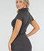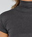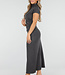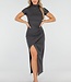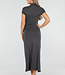 Dunkelgraues Maxikleid aus dehnbarem Jersey mit glatter Oberfläche. Mit Rollkragen, kurzen Ärmeln und enger Passform. Der Rock ist lang und hat vorne einen hohen Schlitz. Der Stoff ist dehnbar, sodass das Kleid schön sitzt und bequem zu tragen ist.