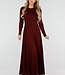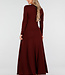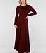 Dieses Maxikleid in Bordeauxrot ist aus einem bequemen Stretchstoff gefertigt, der sich schön an den Körper anschmiegt. Das Modell hat einen Rundhalsausschnitt, lange Ärmel und eine elegante Passform. Dank des geschmeidigen Stoffes fühlt sich das Kleid weich und bequem an.
