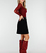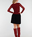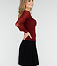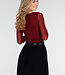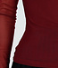 Bordeauxrotes Oberteil aus dehnbarem Mesh-Stoff mit eng anliegender Passform. Mit quadratischem Ausschnitt, langen Ärmeln und dezent transparentem Finish. Der Körper ist doppelt gefüttert, wodurch er weniger durchscheint, während die Ärmel leicht transparent bleiben.