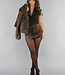 Dieser süße Rock ist aus einem weichen Stoff gefertigt. Er hat einen niedlichen Panther-Print und hat eine Mini-Passform. Er hat einen verdeckten Reißverschluss, der das An- und Ausziehen erleichtert. Schön zu kombinieren mit dem passenden Blazer.