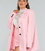 Dieser hellrosa Oversize-Blazer ist aus einem robusten, geschmeidigen Stoff gefertigt. Der Blazer verfügt über einen klassischen Knopfverschluss und zwei dekorative Taschen auf der Vorderseite. Die langen Ärmel können für einen lässigen Look einfach hochgekrempelt werden, während die übergroße Passform einen modernen Look kreiert. Der Blazer verfügt über subtile Details, wie zum Beispiel einen schön verarbeiteten Kragen.