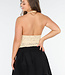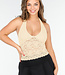 Vanillefarbenes Spitzenhalfter-Crop-Top mit tiefem V-Ausschnitt