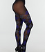 Strumpfhose aus transparentem, dunklem Material mit einem Karomuster in Dunkelblau, Grau und Schwarz. Das Muster verläuft gleichmäßig über das gesamte Bein und hat ein klassisches Argyle-Design. Die Strumpfhose hat eine figurbetonte Passform und einen elastischen Bund für einen stabilen Sitz.