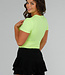 Dieser neongelbe Body kombiniert ein schmeichelhaftes Design mit trendigem Appeal. Der tiefe V-Ausschnitt und die drapierte Drehung auf der Vorderseite sorgen für eine elegante Silhouette. Die kurzen Ärmel bieten zusätzlichen Komfort, während sich der dehnbare Stoff perfekt an den Körper anpasst. Der hohe Ausschnitt am unteren Ende setzt einen raffinierten und modernen Akzent. Ideal zum Kombinieren mit hoch taillierten Hosen oder Röcken für einen stilvollen Look. Der Body hat einen Hakenverschluss, der sich in drei Positionen einstellen lässt.