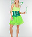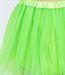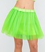 Dieser Rock besteht aus mehreren Lagen feinem Tüll in neongrüner Farbe. Der Rock ist kurz und transparent, wobei die Tülllagen übereinander fallen und für Volumen sorgen. Auf der Innenseite ist ein fester Unterrock eingenäht, der für zusätzliche Abdeckung unter den Tülllagen sorgt. Die Taille ist mit einem elastischen Band versehen.