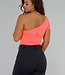 Dieses auffällige, korallenfarbene Kurzarm-Crop-Top hat ein asymmetrisches One-Shoulder-Design, das einen trendigen und verspielten Look erzeugt. Der dehnbare Stoff liegt gut am Körper an und bietet optimalen Tragekomfort. Durch die verkürzte Länge lässt es sich ideal mit hoch taillierten Hosen oder Röcken kombinieren, um einen modischen Look zu erzielen. Perfekt für ein sommerliches Outfit oder einen Abend im Freien.