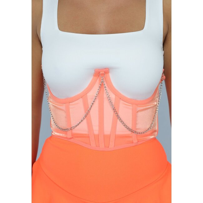 Dieses Underboob-Korsett verfügt über eine Schnürung auf der Rückseite, mit der Sie das Korsett ganz nach Ihrem Geschmack einstellen können. Es hat ein Underboob-Modell, läuft also unter der Brust, wie der Name schon sagt. Das Korsett hat Bügel und ist mit Silberketten verziert.