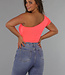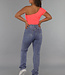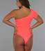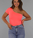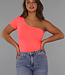 Dieser Body ist aus einem feinen Stretch-Stoff gefertigt. Der Bodysuit hat ein Ein-Schulter-Design mit kurzen Ärmeln. Der Body ist tailliert und hat unten einen Hakenverschluss, der aus zwei Haken besteht, die in drei Positionen eingestellt werden können.