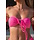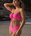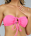 Dieses Bikinioberteil hat eine leuchtend pinke Farbe und ist aus einem gerippten Stoff gefertigt. Das Oberteil hat einen Bandeau-Stil mit herausnehmbaren Polstern. Die Bänder verlaufen bis zum Hals, wo Sie das Oberteil nach Belieben binden können.