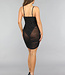 Dieses Netzkleid hat Spaghetti-Träger und ist gut geschnitten. Das Mieder hat einen herzförmigen Ausschnitt. Dieses Kleid ist komplett aus Mesh und daher durchsichtig, mit Ausnahme der Cups. Die Cups sind mit Bügeln versehen, so dass das Tragen eines BHs überflüssig ist. Das Kleid ist elastisch und lässt sich leicht an- und ausziehen. Der Rock des Kleides ist ebenfalls durchsichtig und der Rock enthält eine Hose.