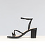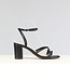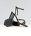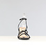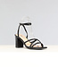 Diese Peeptoe-Sandalen sind aus einem Material in Lederoptik gefertigt und haben einen Peeptoe. Sie haben einen stabilen Blockabsatz und quer über den Vorderfuß verlaufen schmale Riemen, die sich manchmal an verschiedenen Stellen kreuzen. Diese Sandalen haben einen offenen Absatz und die Zehenkappe ist quadratisch.