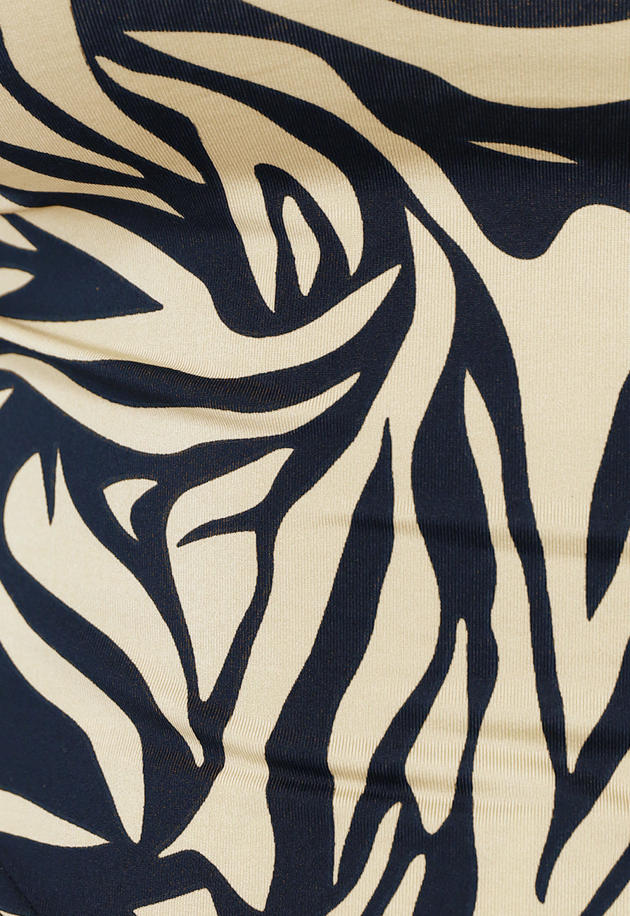 Deze elastische top heeft een ronde halslijn en brede schouderbanden. Doordat de top elastisch is, sluit hij mooi aan. Hij heeft aan de onderkant een leuk effect doordat hij in een punt loopt. Met een leuke zebra print en leuk te combineren met de bijpassende broek!