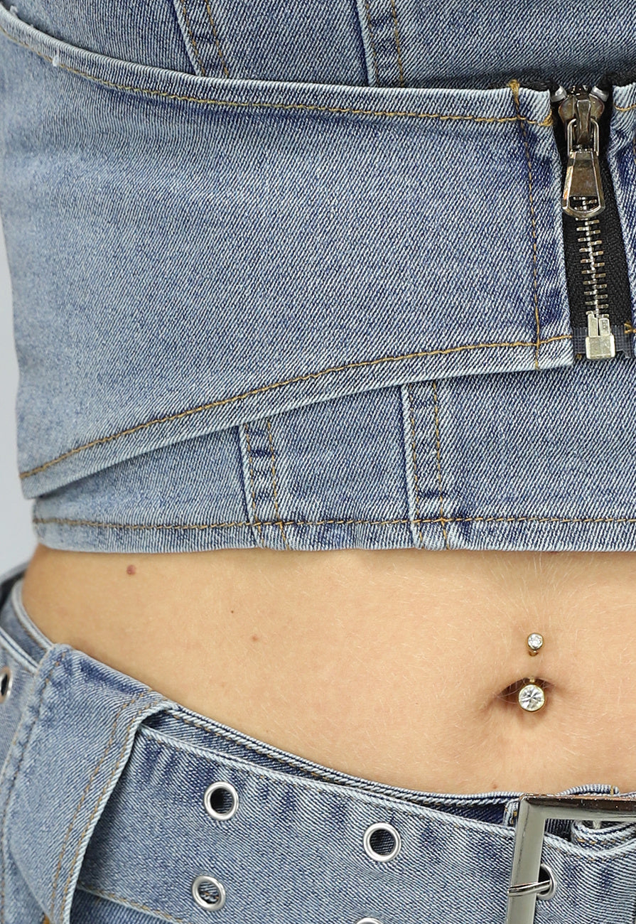 NEW0805 Blauwe Denim Co Ord Set met Riem Maat S