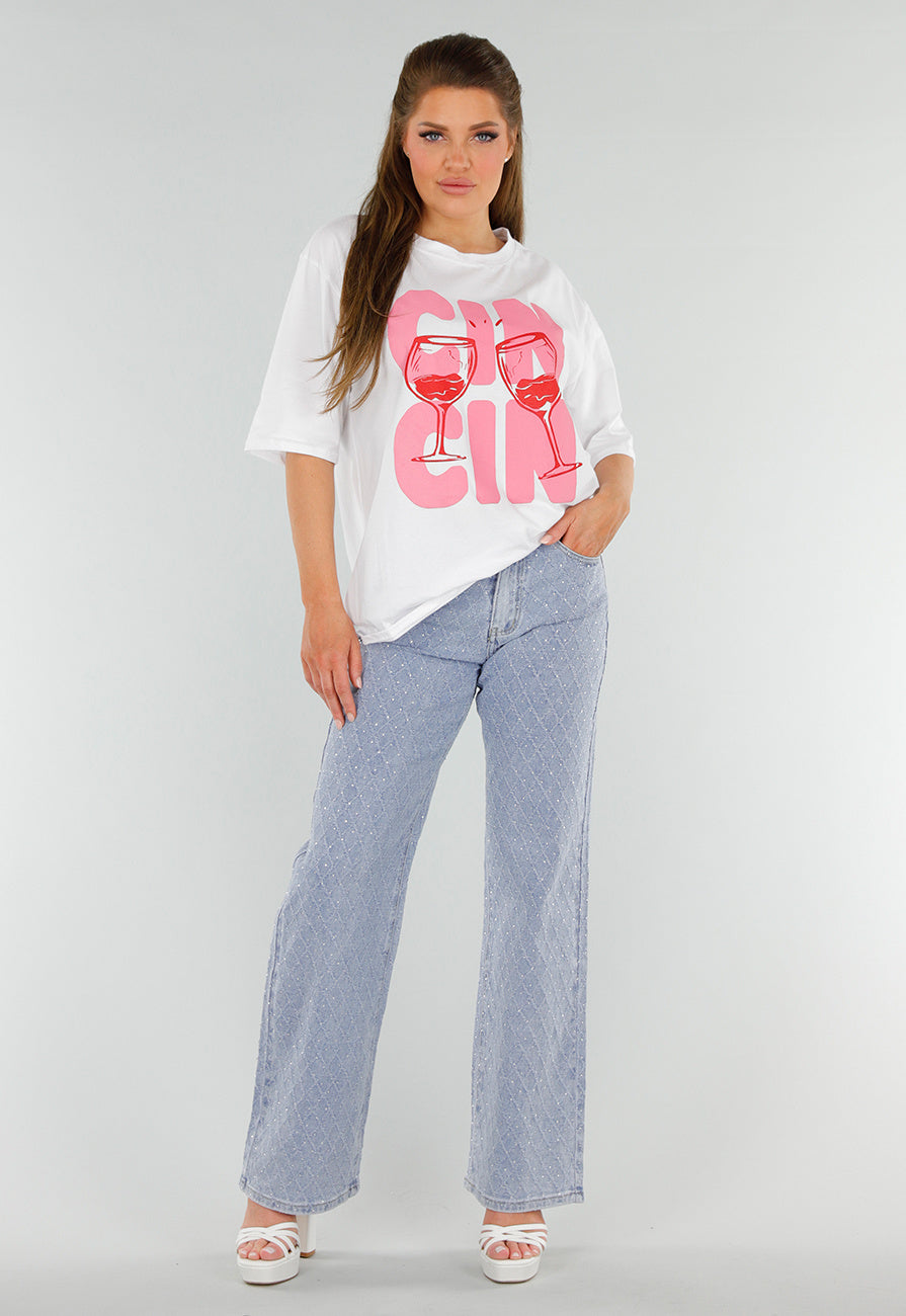 Blauwe Jeans met Strass en Rechte Pijpen