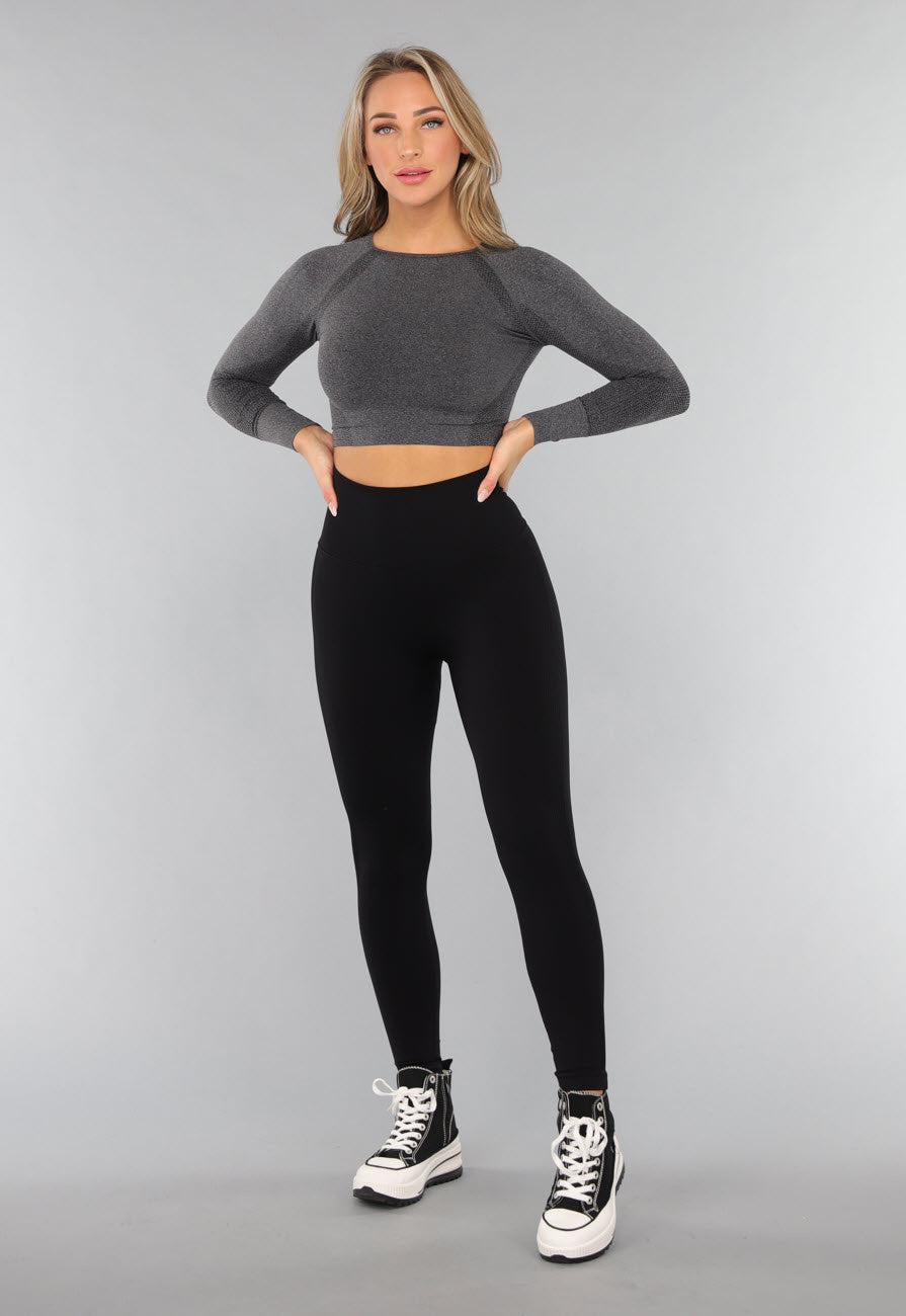 SALE30 Grijze Longsleeve Cropped Sporttop Maat S