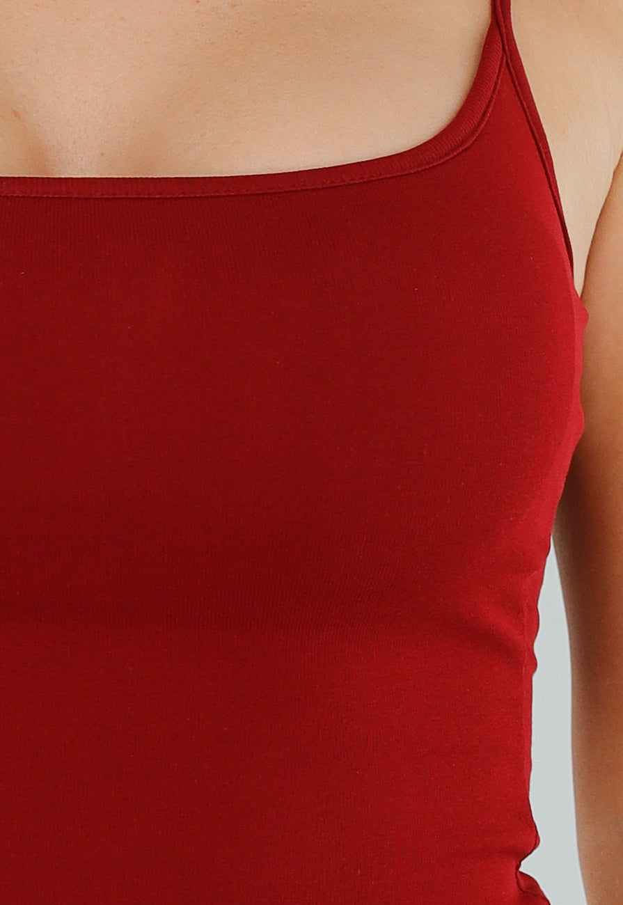 Donkerrood Hemdtopje met Cups en Stretch