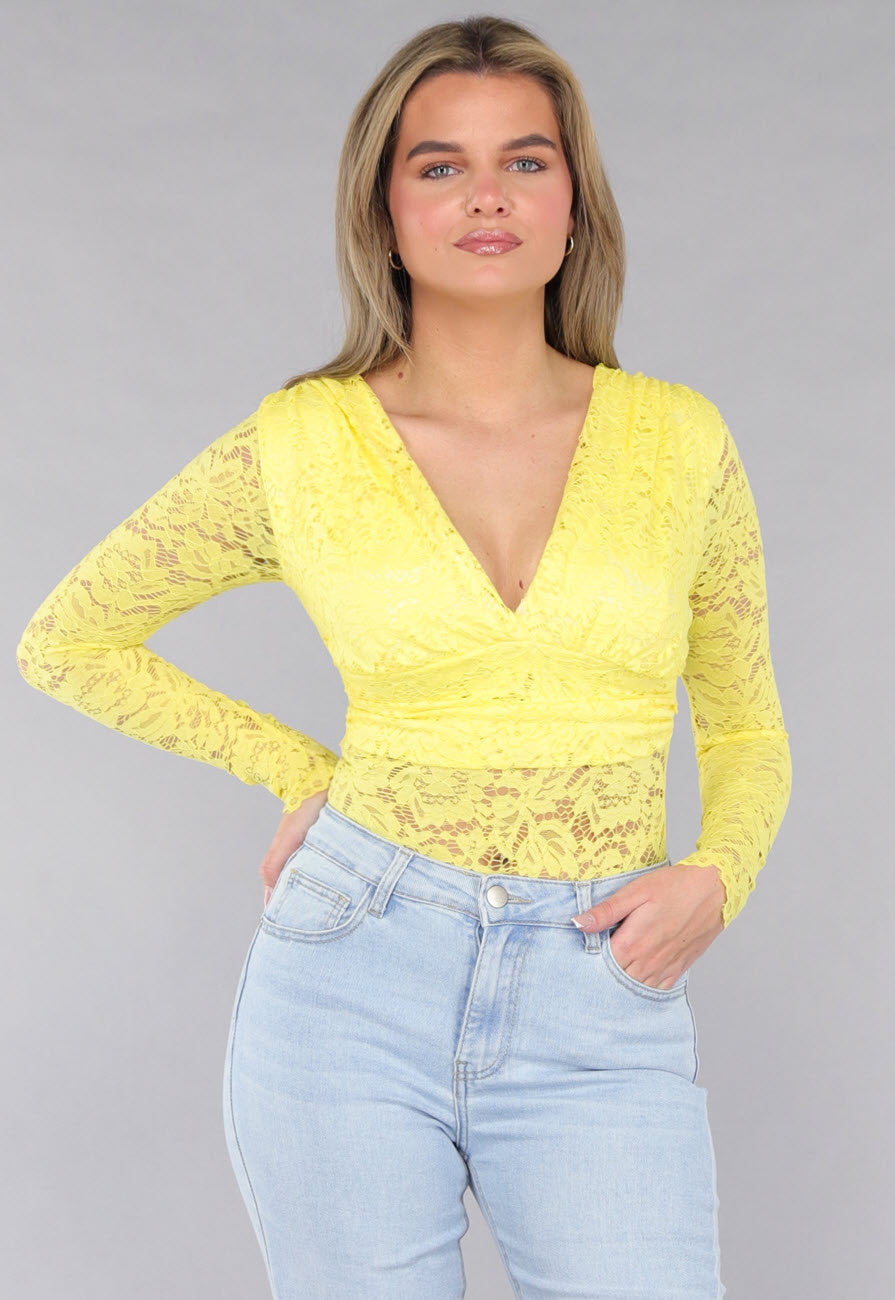 Gele Kanten Bodysuit met Padding