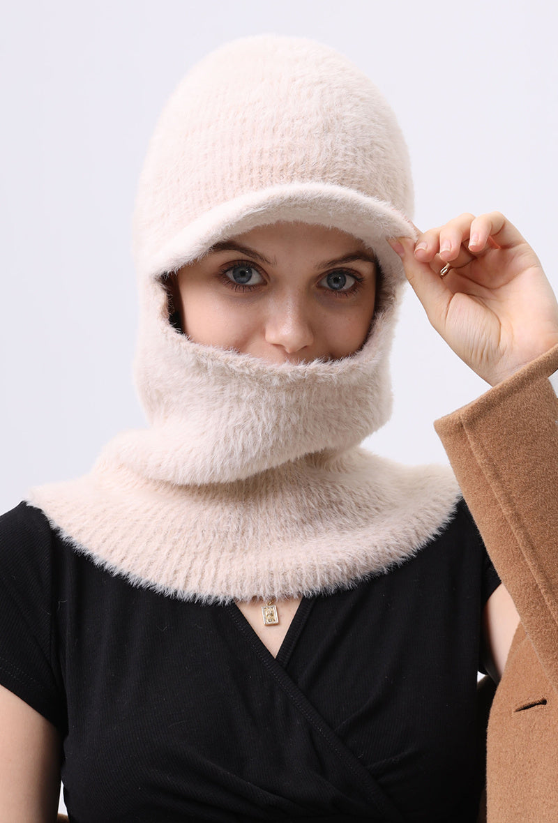 Deze muts is heerlijk zacht en bedekt het gezicht, waardoor hij perfect is voor de koude dagen. De muts is voorzien van een vaste col en een klep.