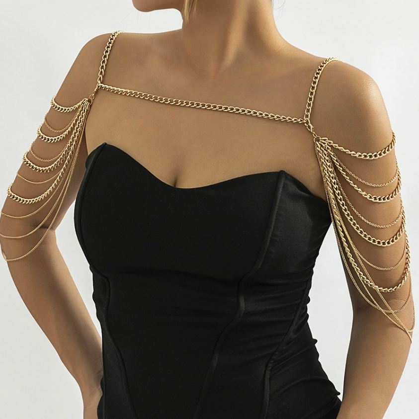 Gouden Grove Schouder Ketting met Laagjes