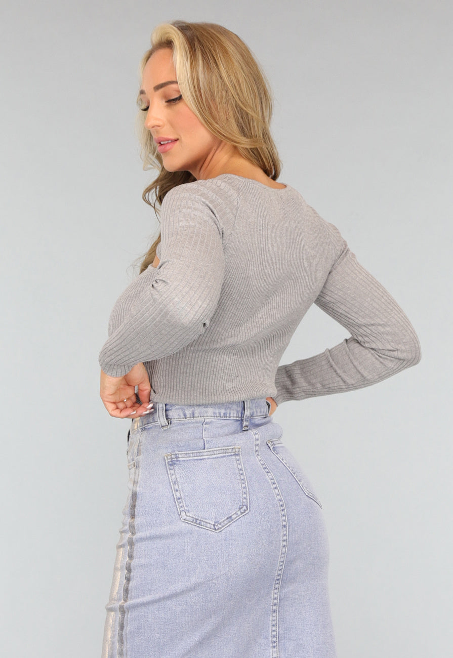 Grijze Lange Mouwen Top met Cutouts