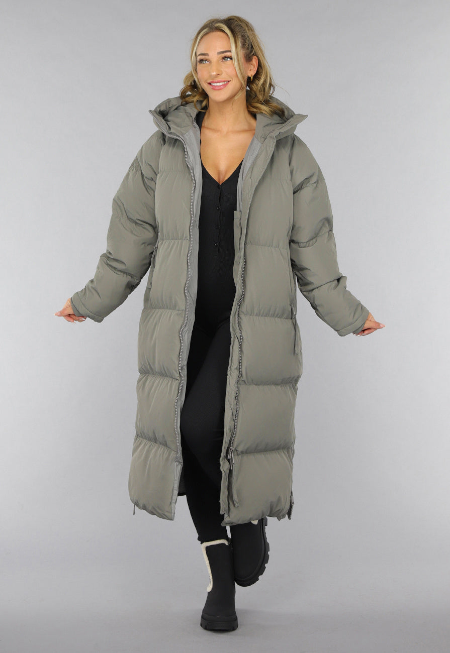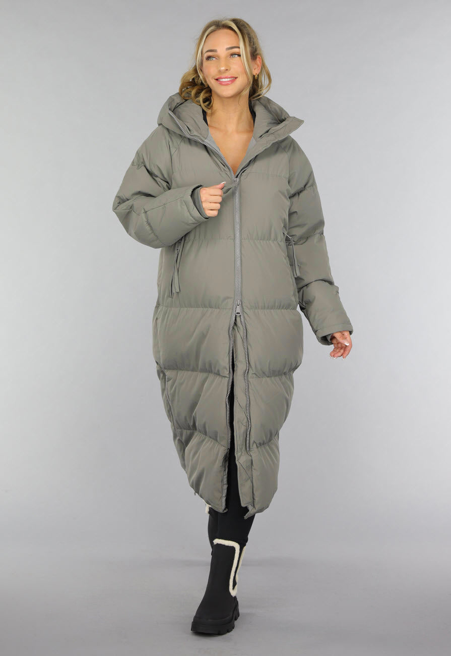 Grijze Lange Puffer Winterjas