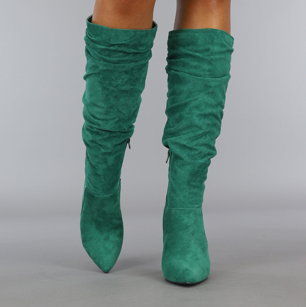 Groene Geplooide Laars met Stiletto Hak Lees meer