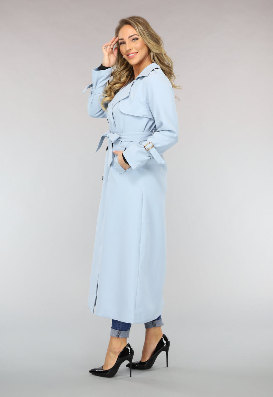 Lange Jas met Ceintuur in Babyblauw