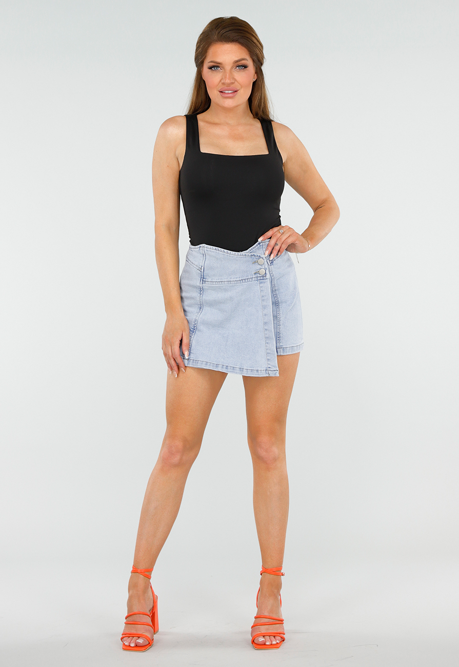 Lichtblauwe High Waist Stretch Denim Skort met Overslag