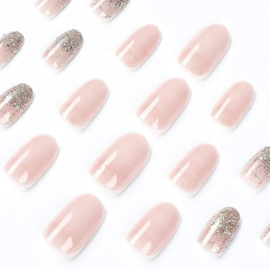 NEW3011 Ovaal Nude Nepnagels met Glitter 1 Set van 24 Stuks