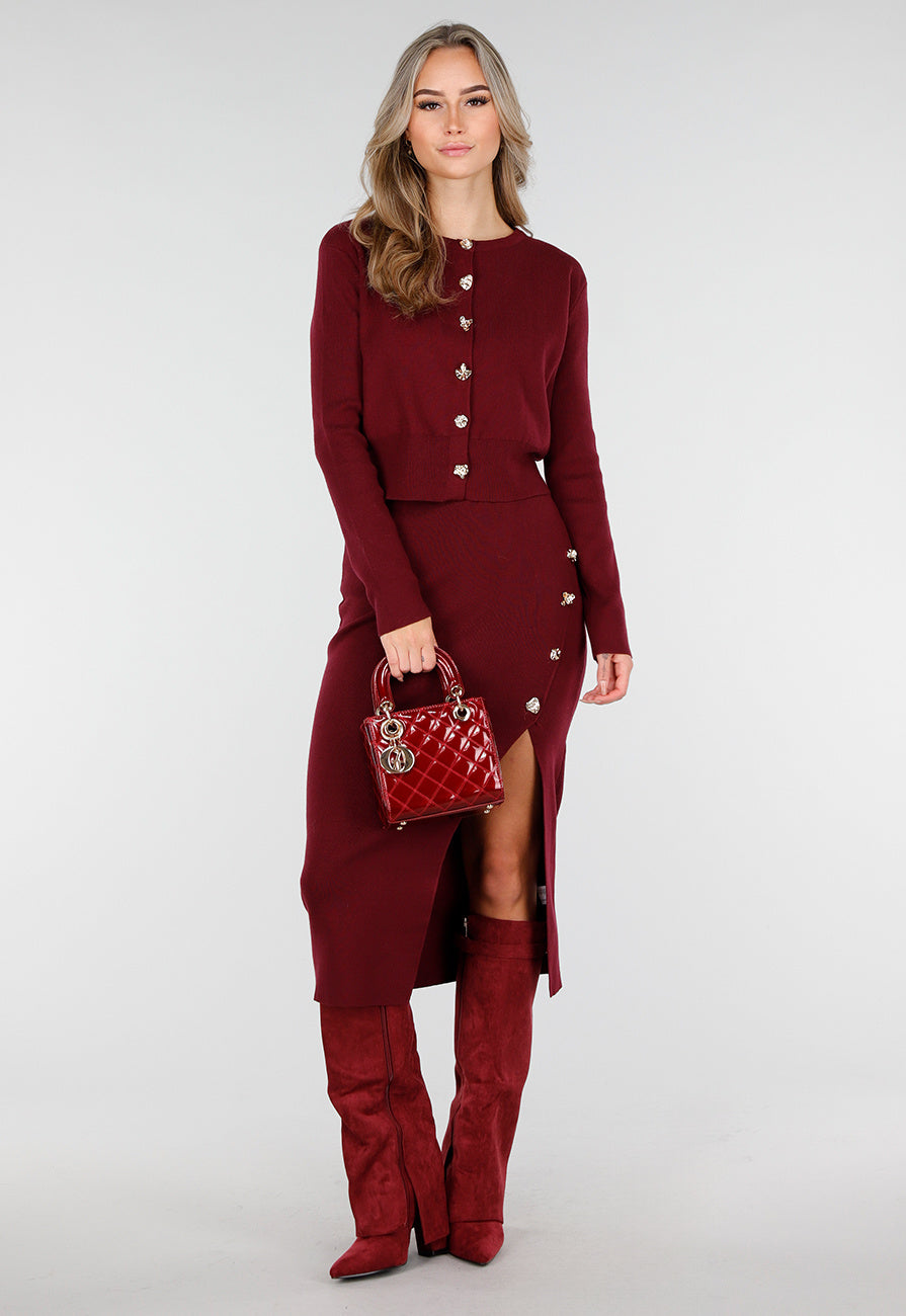 Deze rode handtas heeft een opvallend glanzend oppervlak met een doorgestikt ruitpatroon. De tas is compact uitgevoerd met afmetingen van circa 17 cm breed, 16 cm hoog en 8 cm diep, en heeft een gewicht van 0,6 kg. Aan de bovenzijde zijn twee stevige handvatten bevestigd met goudkleurige ringen. Voorop hangt een decoratieve gouden hanger, die de tas een luxe detail geeft. De tas heeft een gestructureerde, stevige vorm en is aan de onderzijde voorzien van kleine beschermdopjes. Dankzij het formaat is dit model ideaal voor het meenemen van de essentiële items.