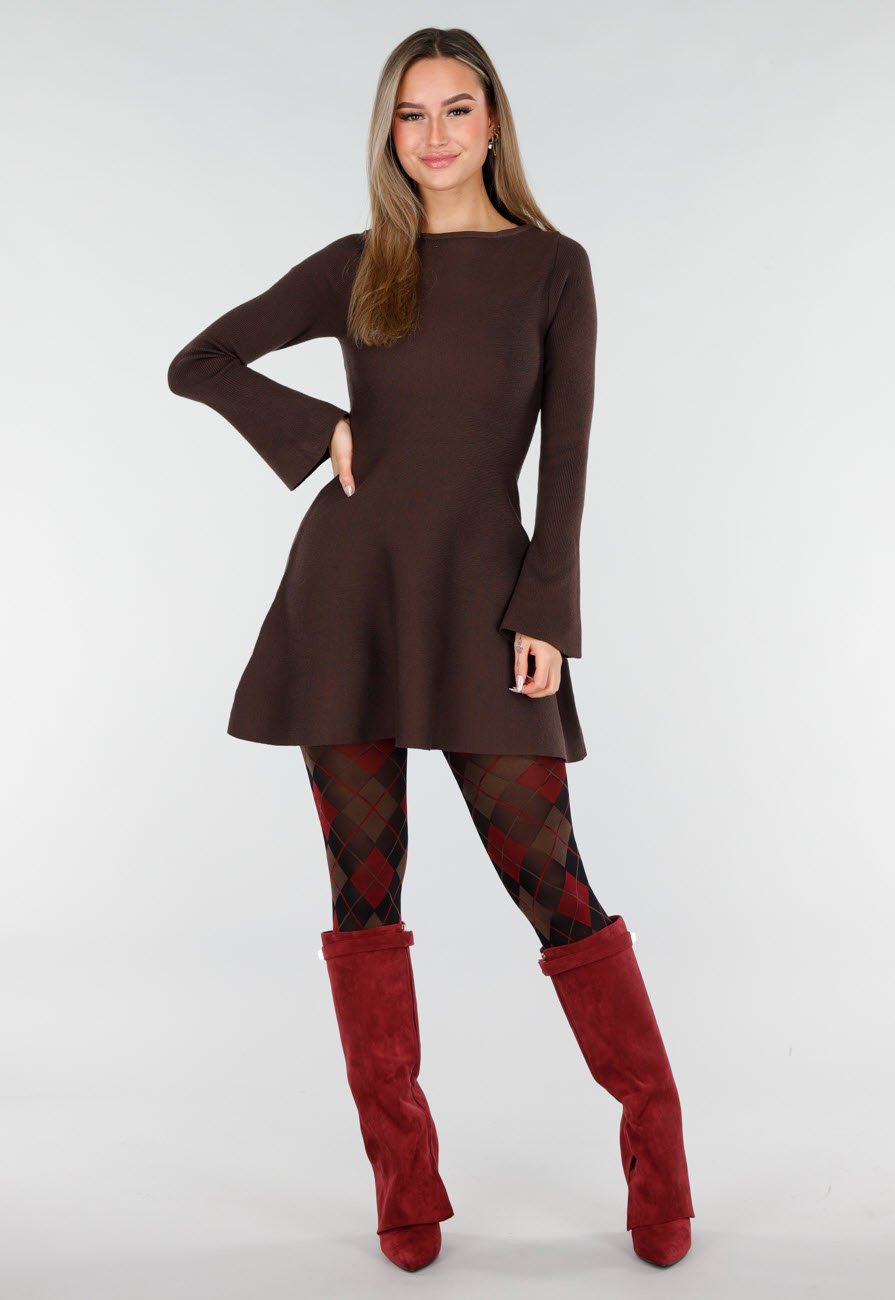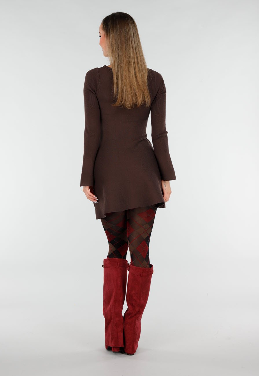 Panty uitgevoerd in een transparante donkere basis met een ruitprint in rood, bruin en zwart. Het patroon loopt gelijkmatig over het gehele been en heeft een klassiek argyle-dessin. De panty heeft een aansluitende pasvorm en een elastische tailleband voor een stabiele aansluiting.
