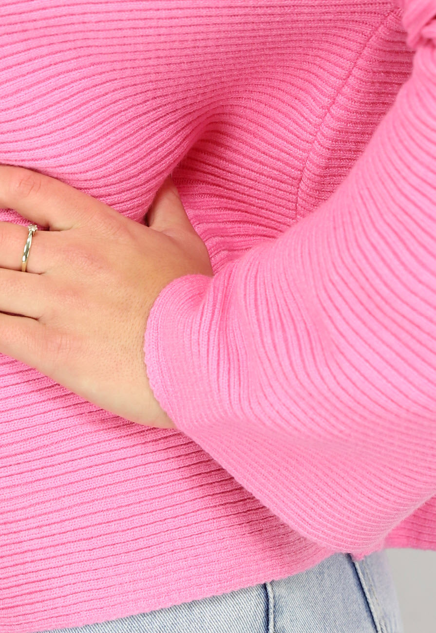 Roze Rib Gebreide Trui met Hoge Hals Lees meer