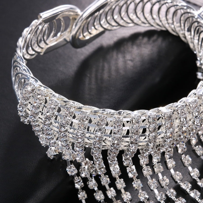 Deze arm ketting heeft een fringe ontwerp en is superleuk voor een festival. Het sieraad is bedekt in strass steentjes, waardoor het een echte eyecatcher is. Wij raden het af om het product onder de douche te dragen om zo de armband van optimale kwaliteit te houden.
