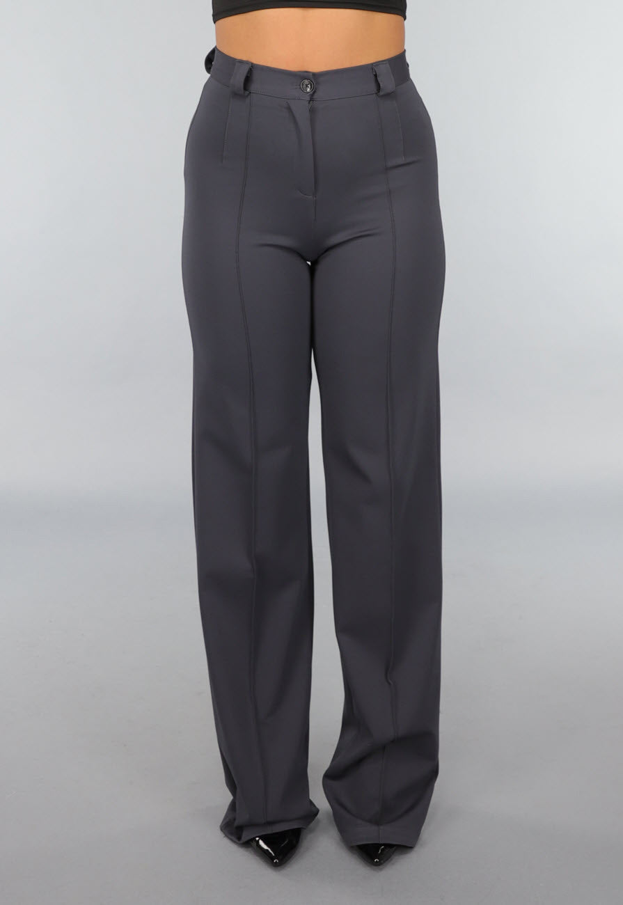 Deze pantalon is gemaakt van een stevige en superstretchy stof. De broek is voorzien van een ritssluiting met enkele knoopsluiting. De pantalon heeft vijf lusjes in de taille waardoor je je eigen favoriete riem erbij kan dragen. Over het been loopt er een biesje helemaal tot onderaan de broek.