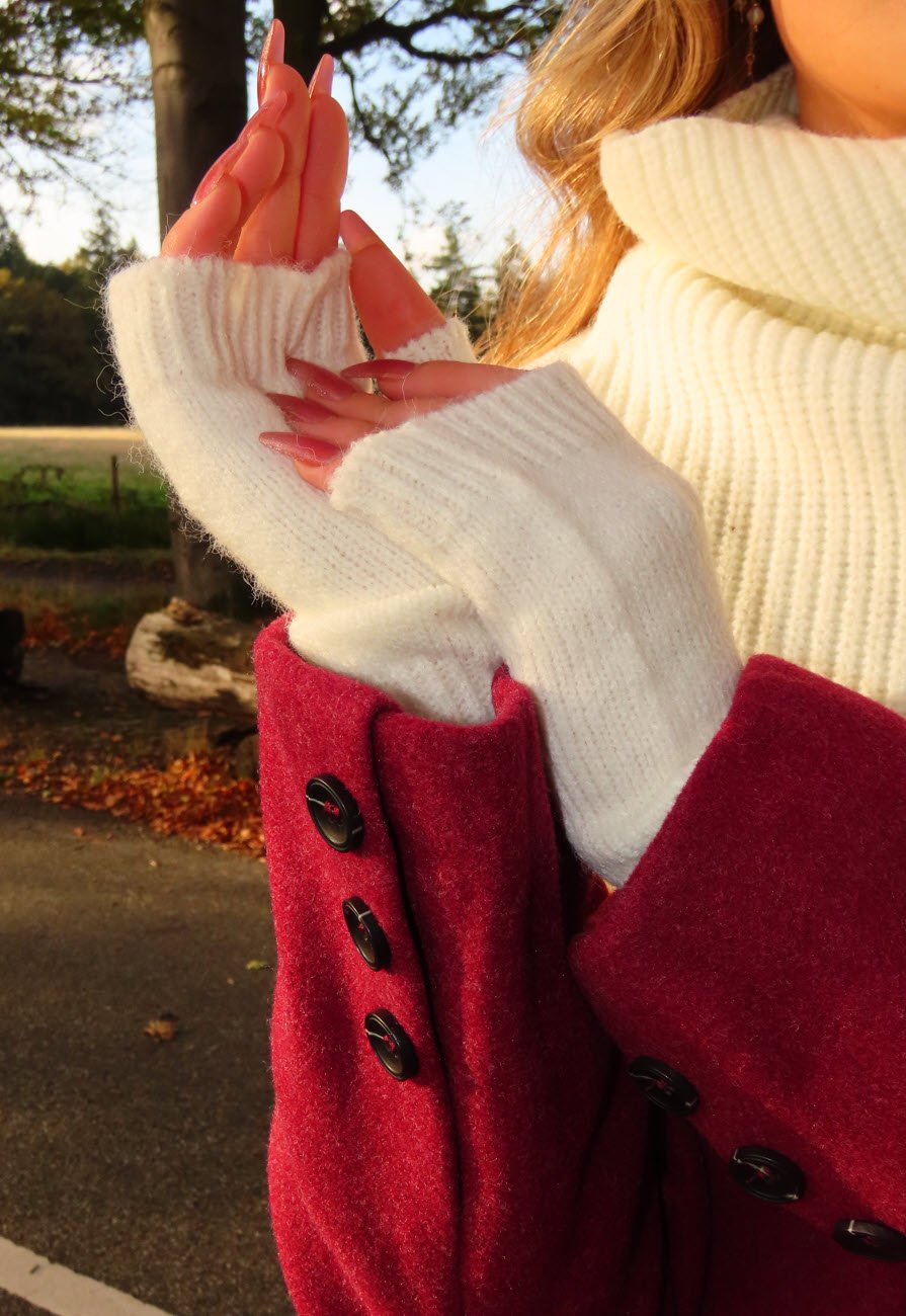 NEW240925 Vingerloze Gebreide Handschoenen Wit