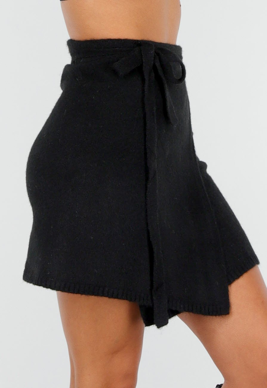Zwarte Gebreide Overslagrok