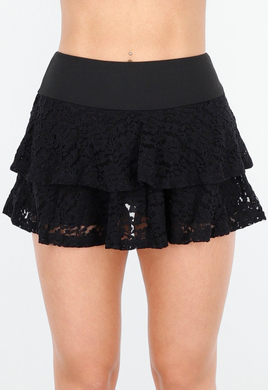 Zwarte Gelaagde Skort van Kant
