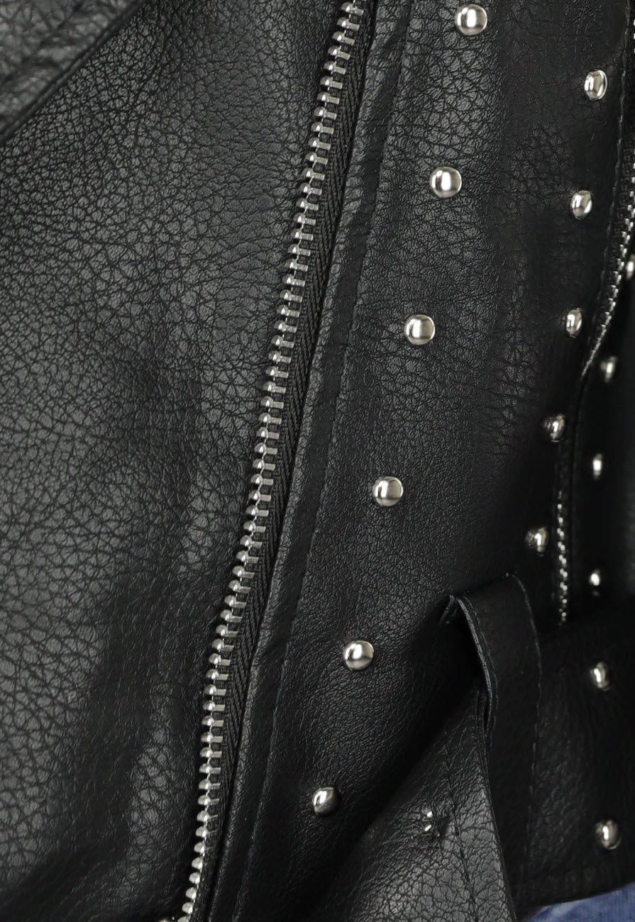 Zwarte Vegan Leren Jas met Studs