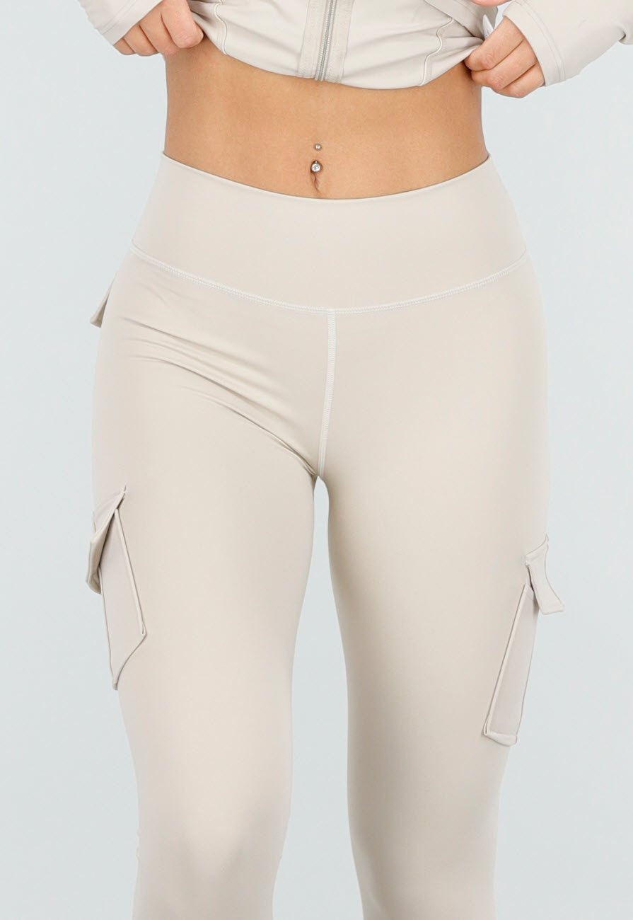 Deze sportset bestaat uit een sportvest en een sportlegging. Beide items zijn gemaakt van een gladde, ademende stof en zijn hierdoor perfect voor het sporten. De mouwen van de top zijn lang en hebben duimgaten aan het uiteinde. De voorkant is voorzien van een ritssluiting. De legging heeft een high waist model en is voorzien van zakken op de bovenbenen en aan de achterkant, daarnaast is de achterkant ook voorzien van een scrunch.